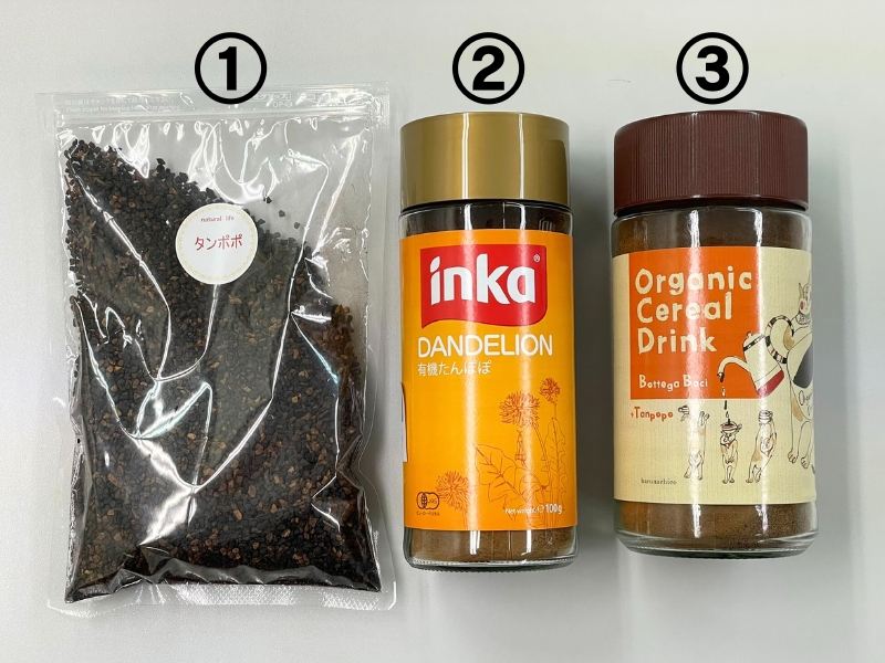 ②③は原材料の中で「有機タンポポ」が4番目の表記であることから、タンポポの割合が少なく、濃度もやや低めでした。