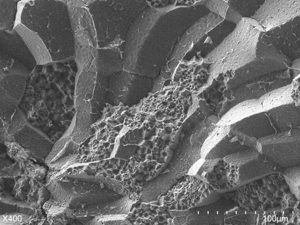 完全な一枚岩ではなく、粒の集合体がまとまってブロックを作っている感じですね。