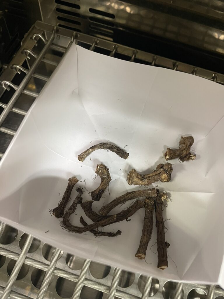 1日かけてしっかり乾燥させるとこんな感じに。からっからに。これを粉末にします。